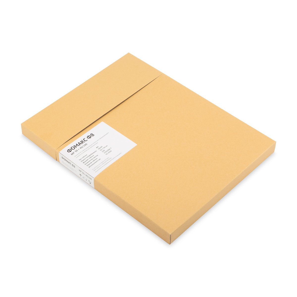 ФОМАКС Ф8 производится в формате листовой радиографической пленки (30 × 40 см), упаковывается по 100 листов в светонепроницаемый конверт. Существует два варианта упаковки: